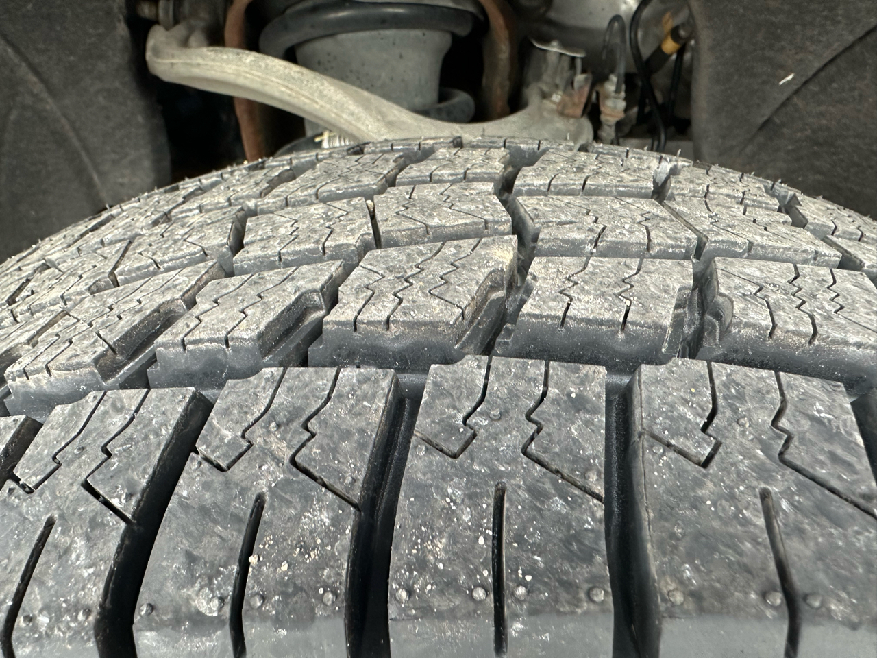 Full-size spare tire and tow hooks