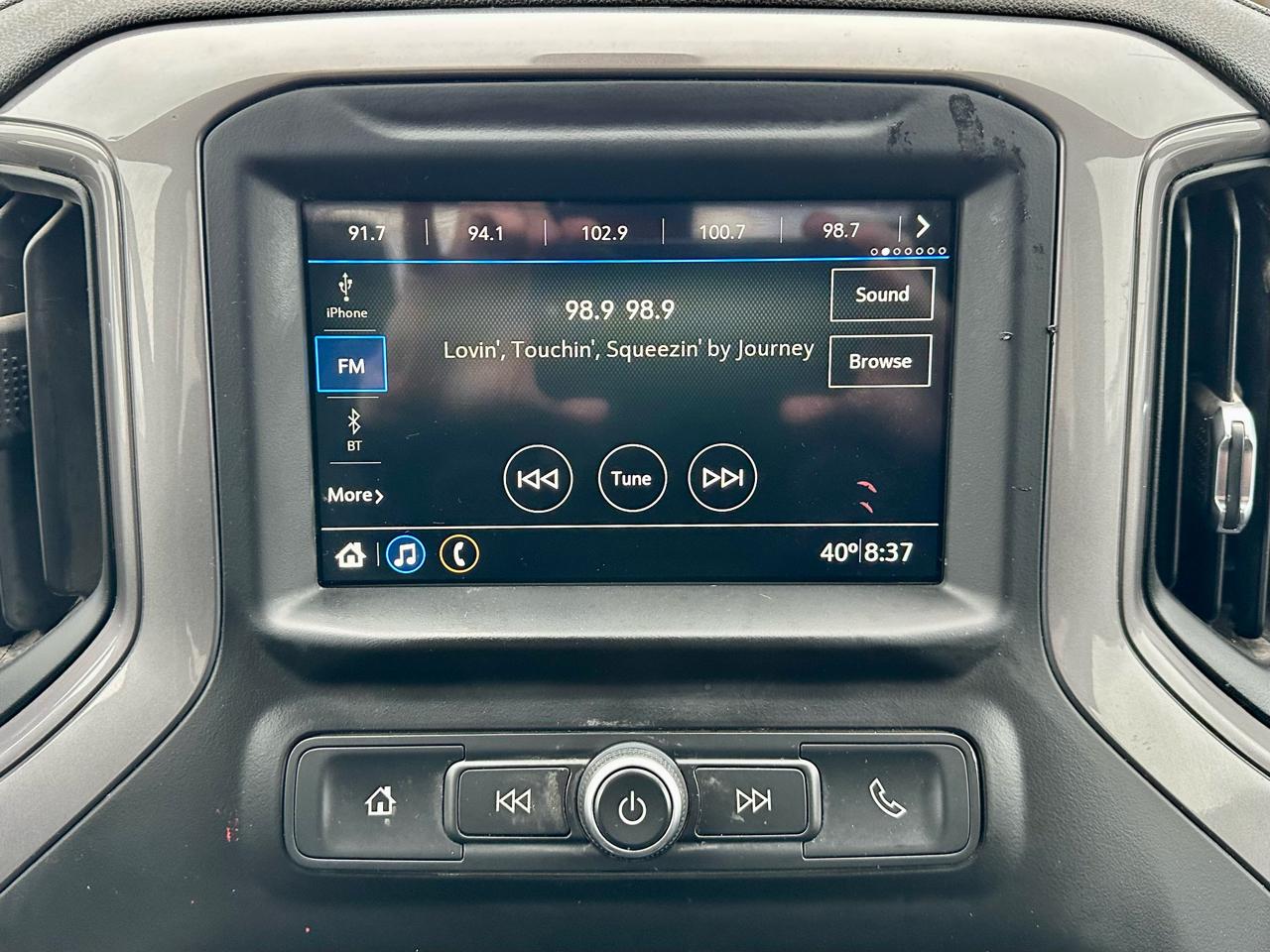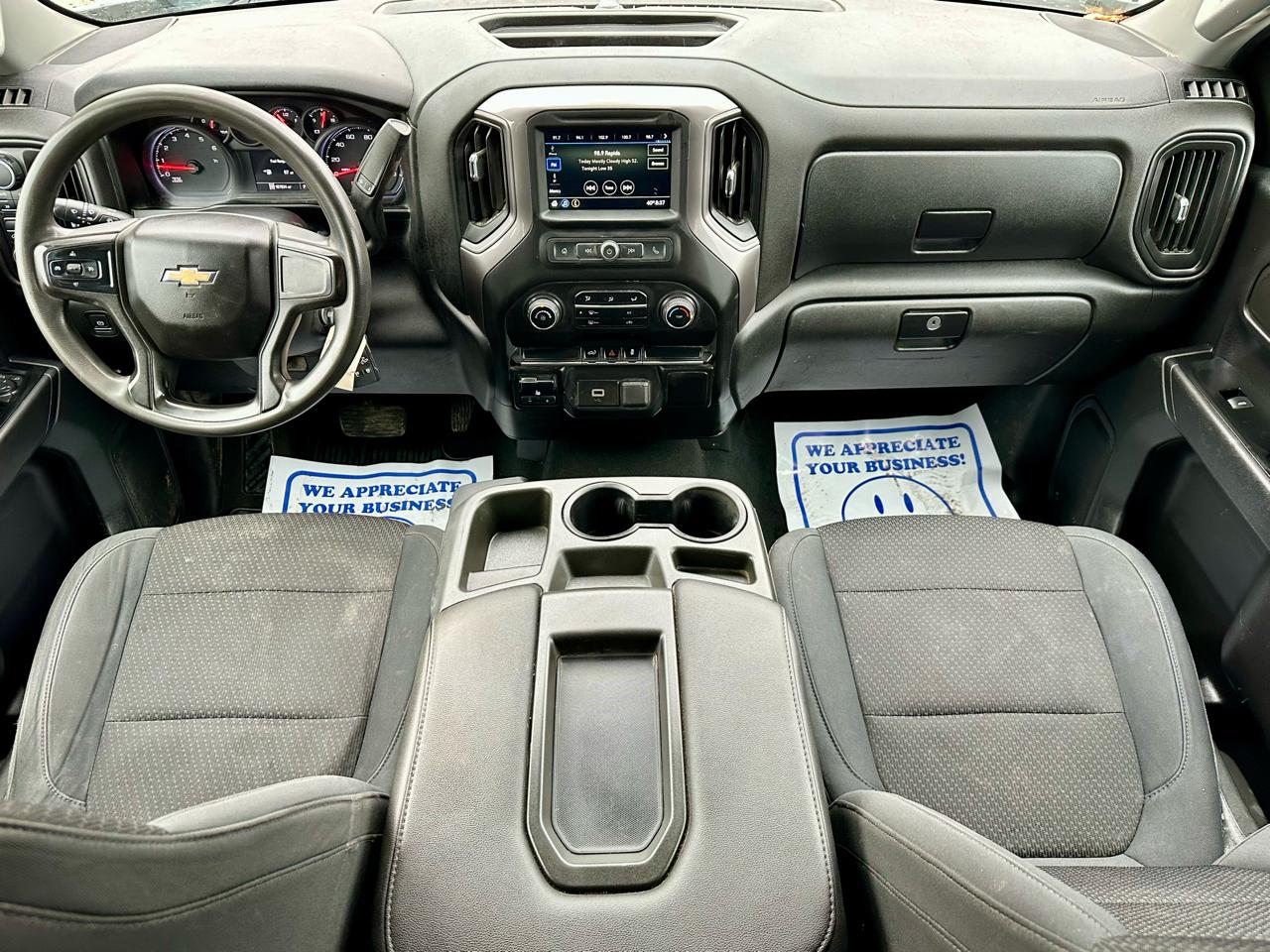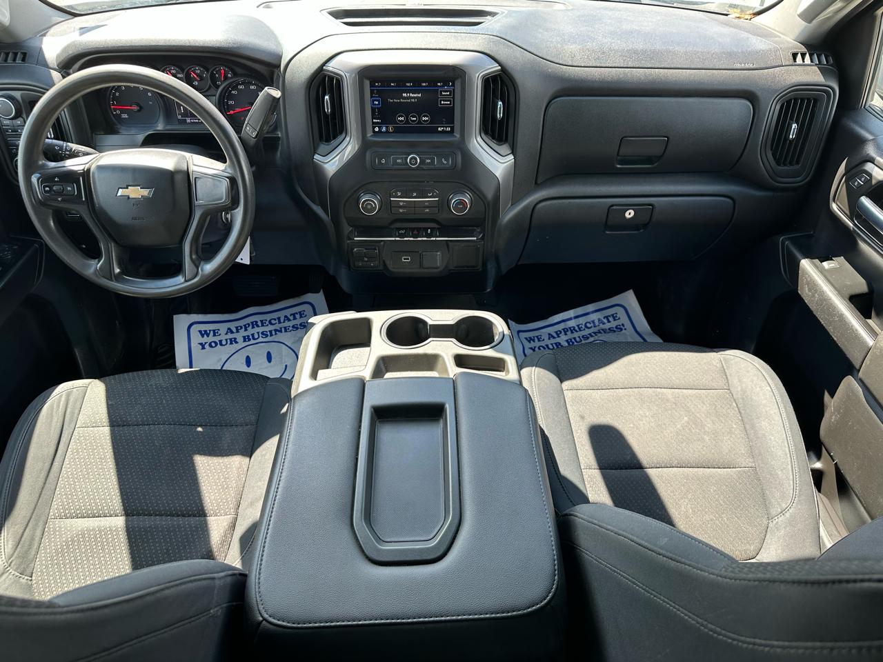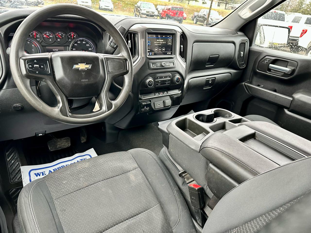 This Silverado includes the 7 inch screen, which gives you a simple, easy to use setup for basic infotainment and camera functions. It keeps the dash straightforward and functional, which fits a work truck well.