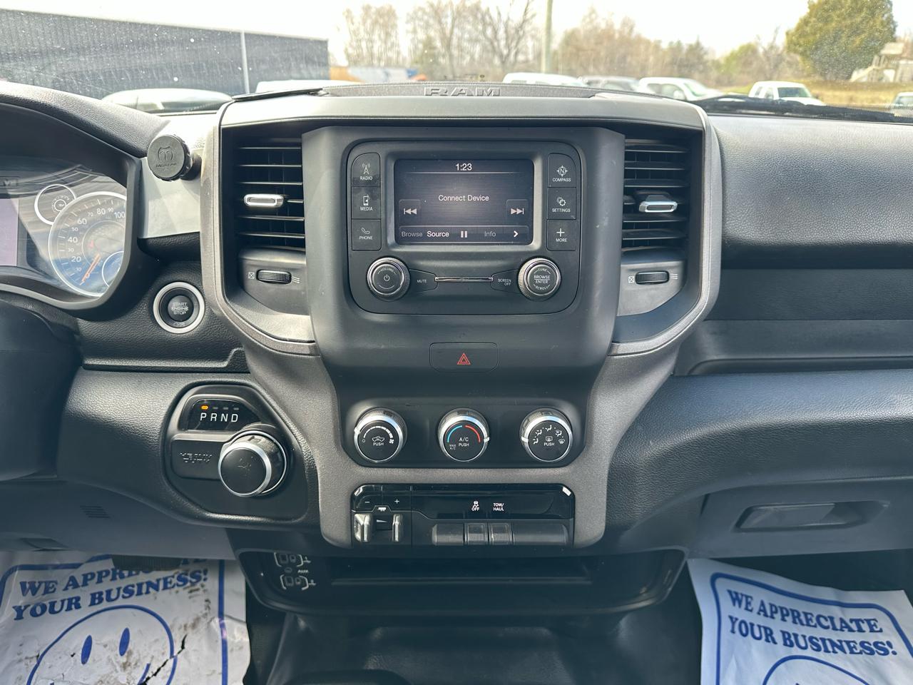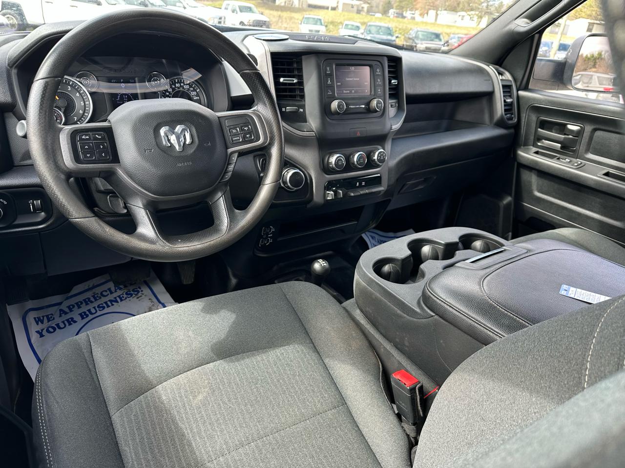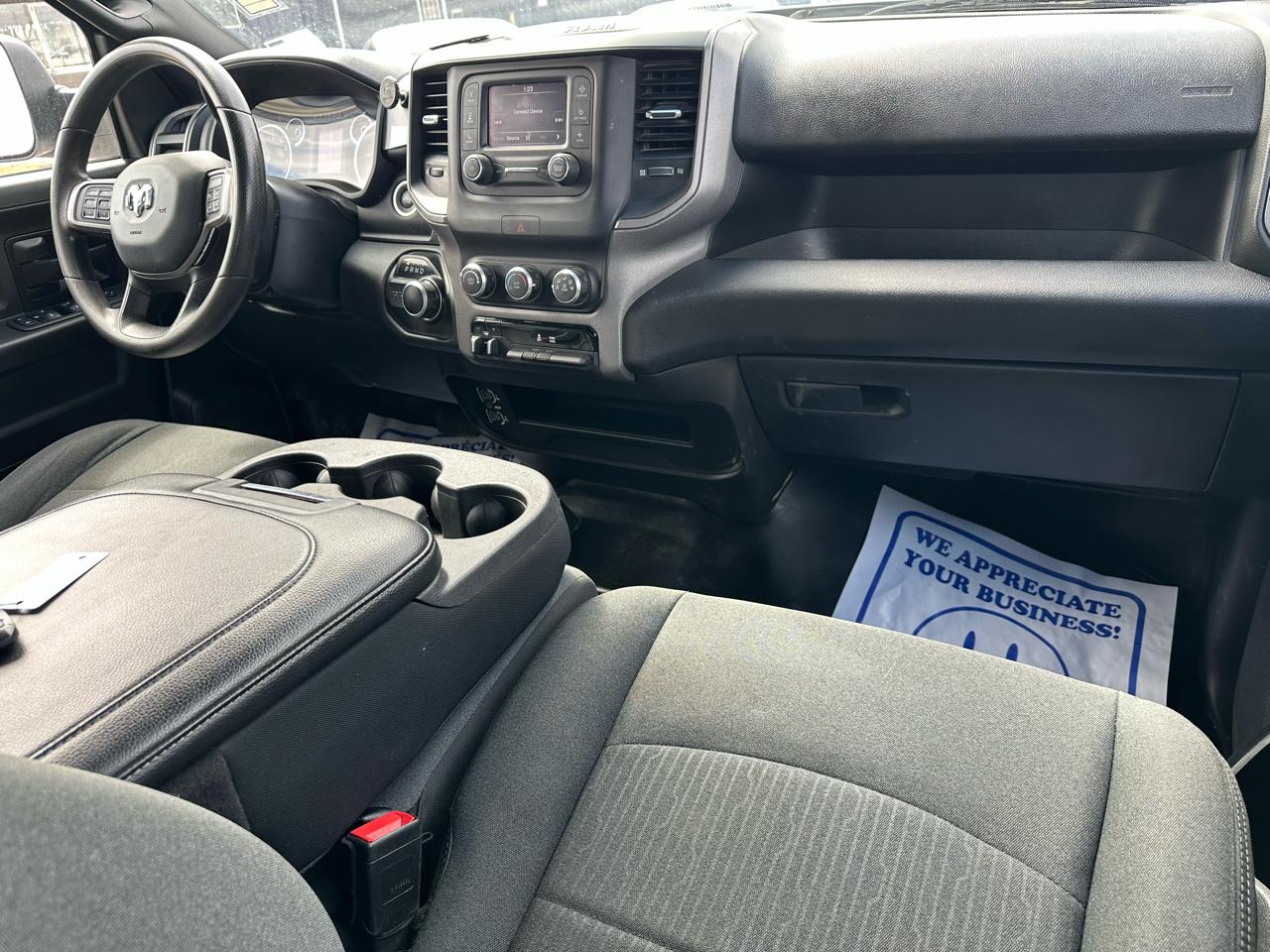 The Tradesman trim keeps things simple and durable, but this truck still gives you the features that matter. The Crew Cab layout gives you full rear seat space for passengers or gear, and the cabin is laid out in a way that is easy to use day to day.